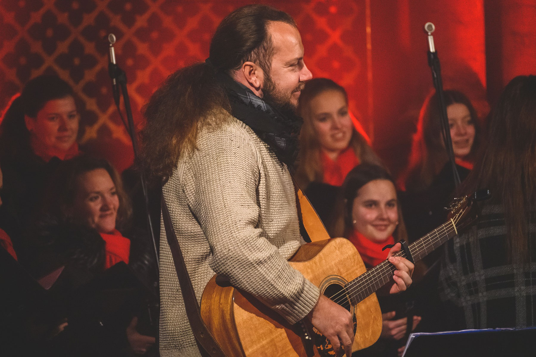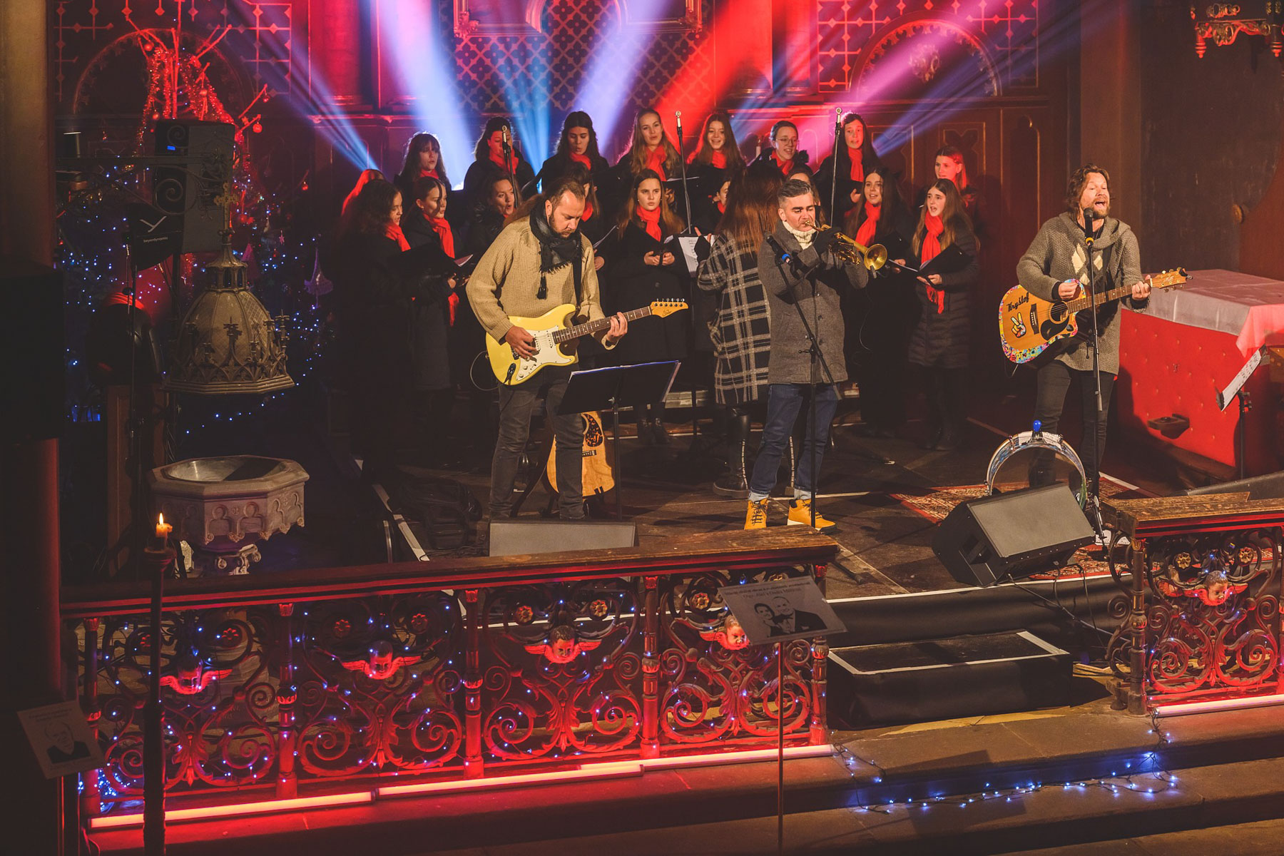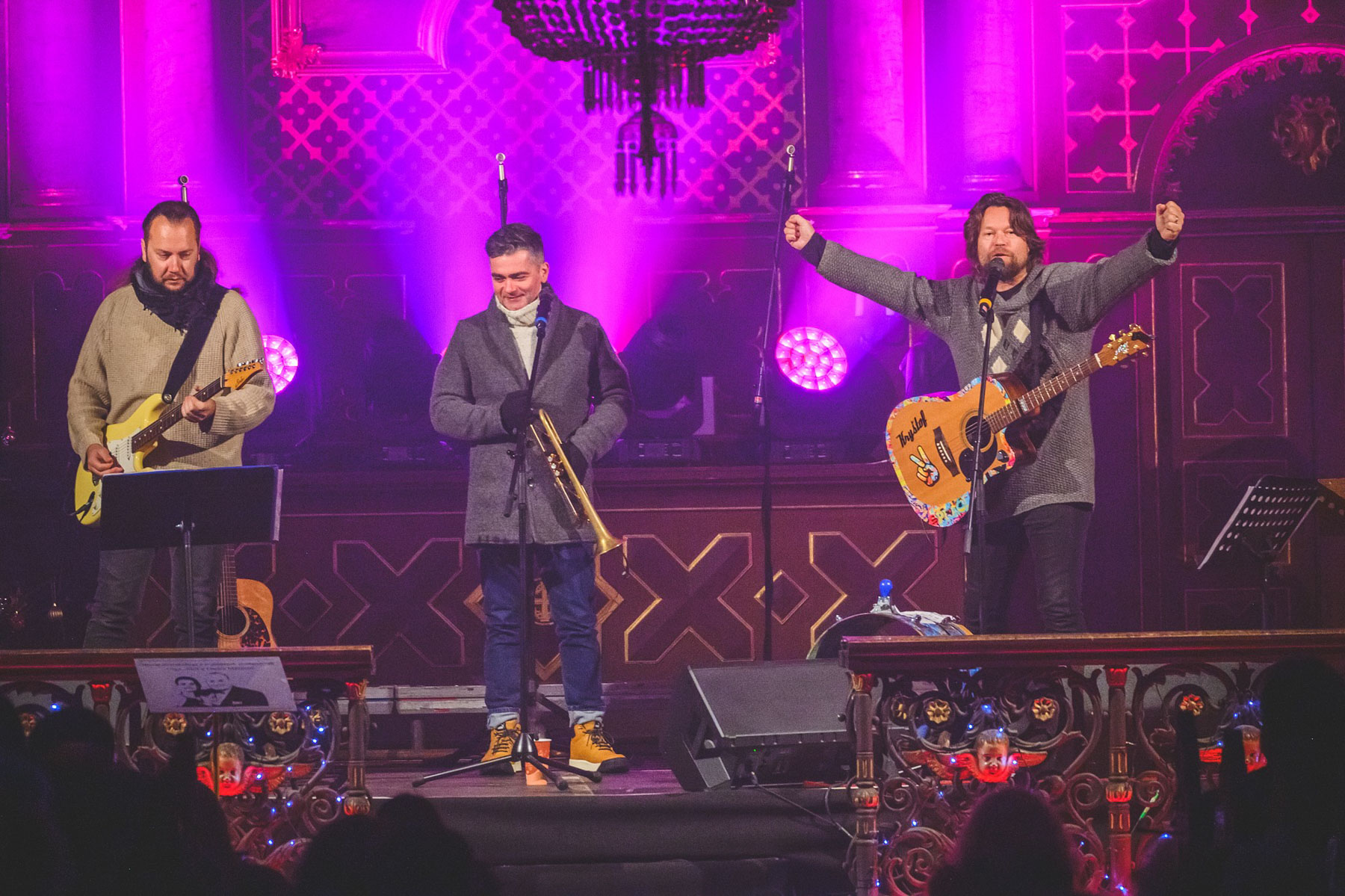 V prosinci musel Richard Krajčo svá vystoupení v kostele sv. Petra a sv. Pavla v Chotěvicích zrušit kvůli zdravotním problémům. Vánoční koncerty s kytaristou Milošem Knoppem, trumpetistou Nikolasem Grigoriadisem a Dětským pěveckým sborem Českého rozhlasu si tak lidé užili až o uplynulém lednovém víkendu. „Poprvé po dvou měsících jsem držel v ruce kytaru déle než na pět písní,“ nechal se slyšet frontman kapely Kryštof. O nedělní zahájení koncertu, kde byla přítomna i fotografka Lenka Hurdálková, se postaral svým slovem kněz Zbigniew Czendlink.
