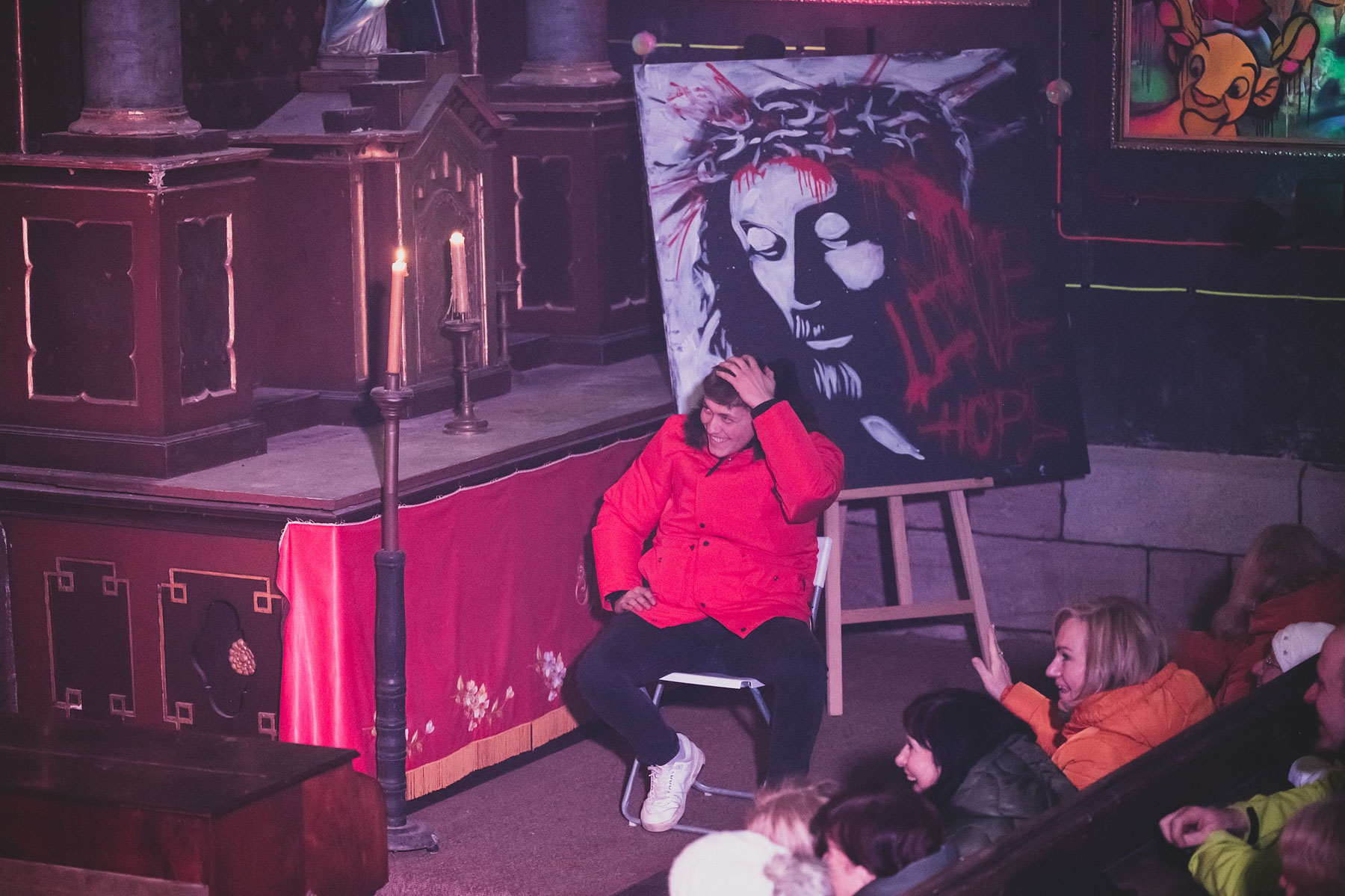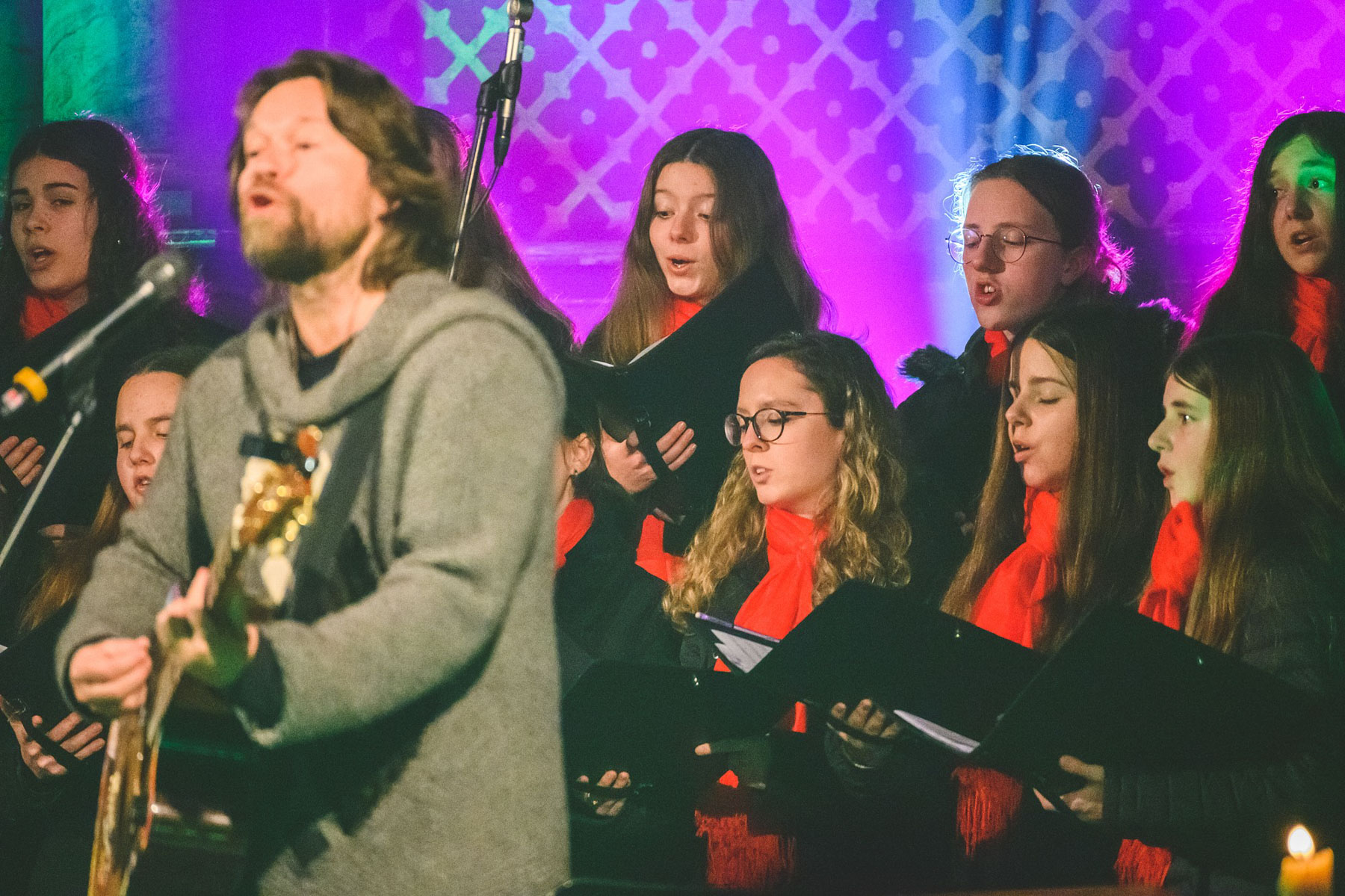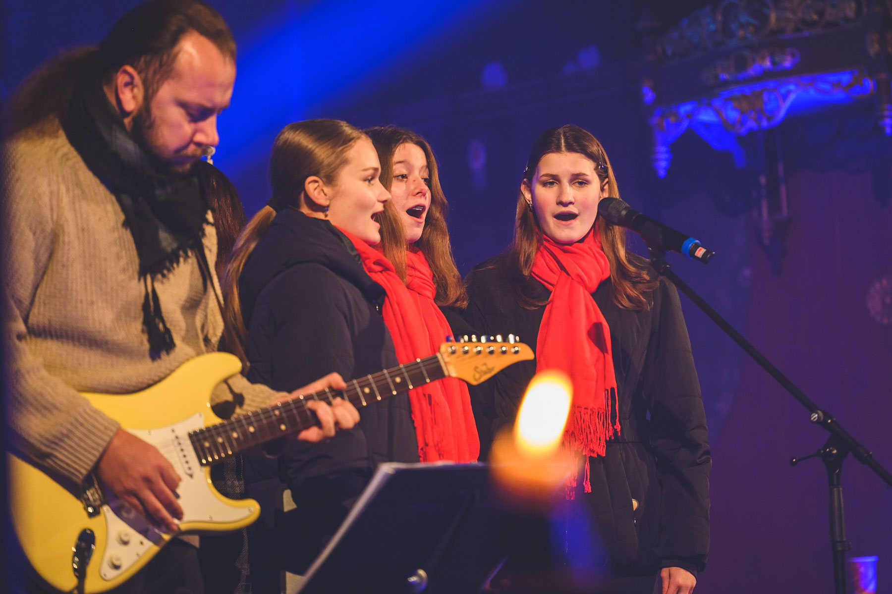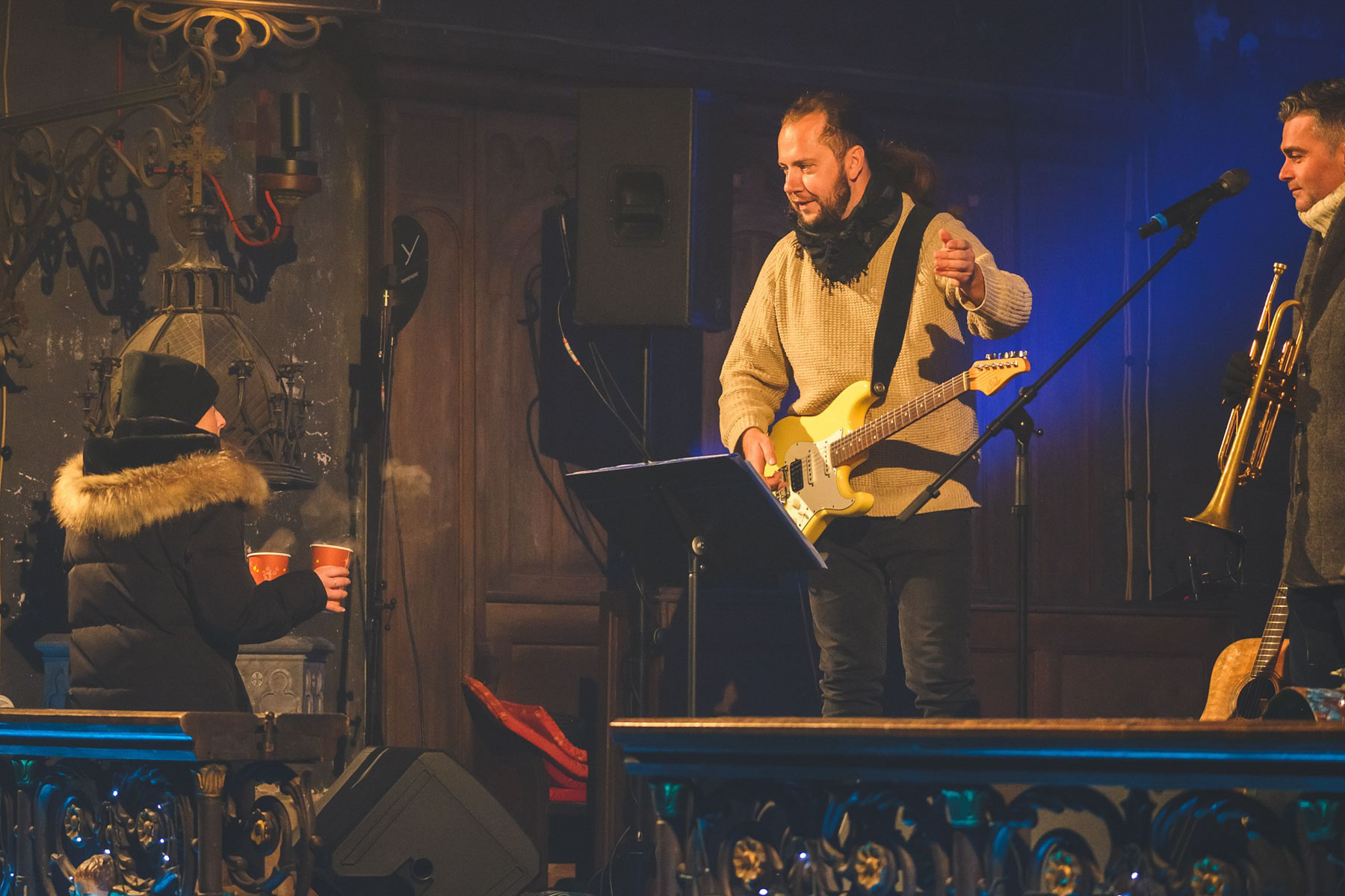 V prosinci musel Richard Krajčo svá vystoupení v kostele sv. Petra a sv. Pavla v Chotěvicích zrušit kvůli zdravotním problémům. Vánoční koncerty s kytaristou Milošem Knoppem, trumpetistou Nikolasem Grigoriadisem a Dětským pěveckým sborem Českého rozhlasu si tak lidé užili až o uplynulém lednovém víkendu. „Poprvé po dvou měsících jsem držel v ruce kytaru déle než na pět písní,“ nechal se slyšet frontman kapely Kryštof. O nedělní zahájení koncertu, kde byla přítomna i fotografka Lenka Hurdálková, se postaral svým slovem kněz Zbigniew Czendlink.