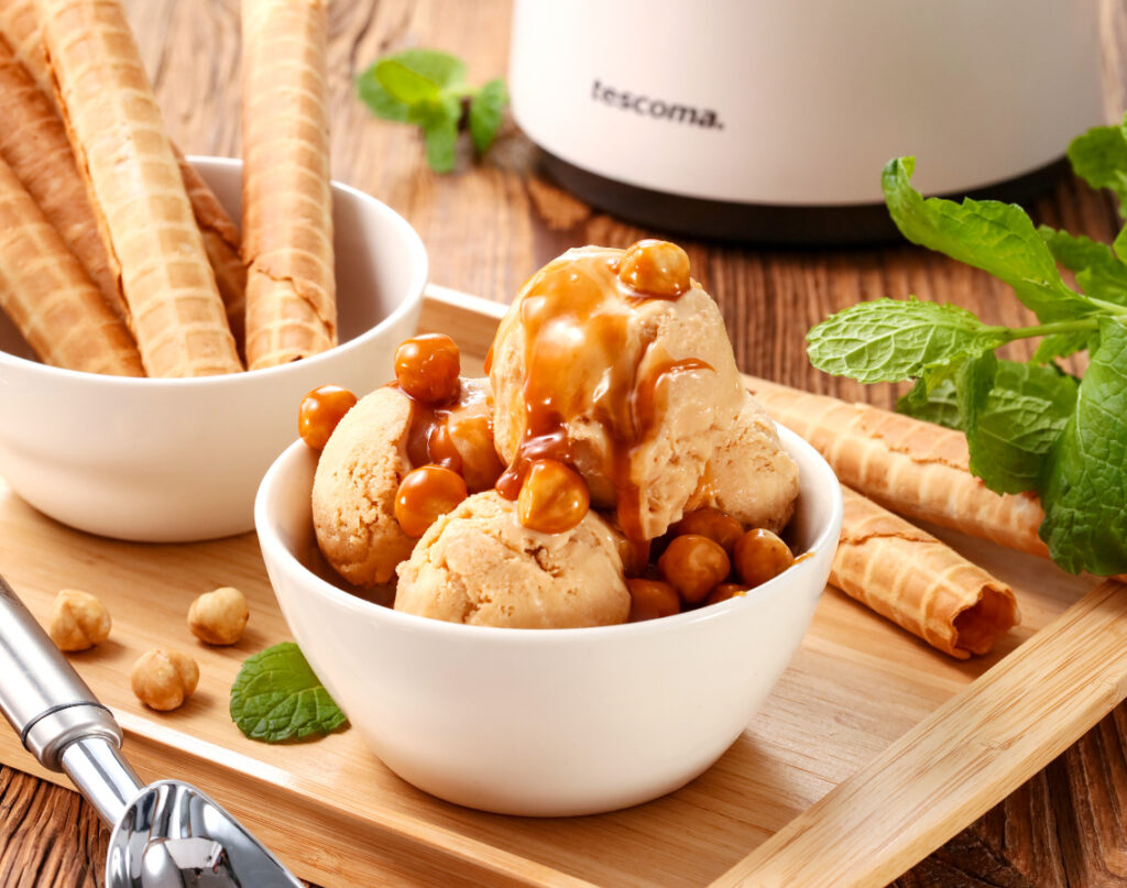 Třeba elektrický zmrzlinovač GrandCHEF od Tescomy je opravdu odborník na slovo vzatý. Vyrobíte v něm až 500 ml kvalitní domácí smetanové nebo ovocné zmrzliny, záleží jen na tom, na co máte doma chuť. Přesně víte, co jíte, protože se vyvarujete všech konzervantů a dochucovadel.