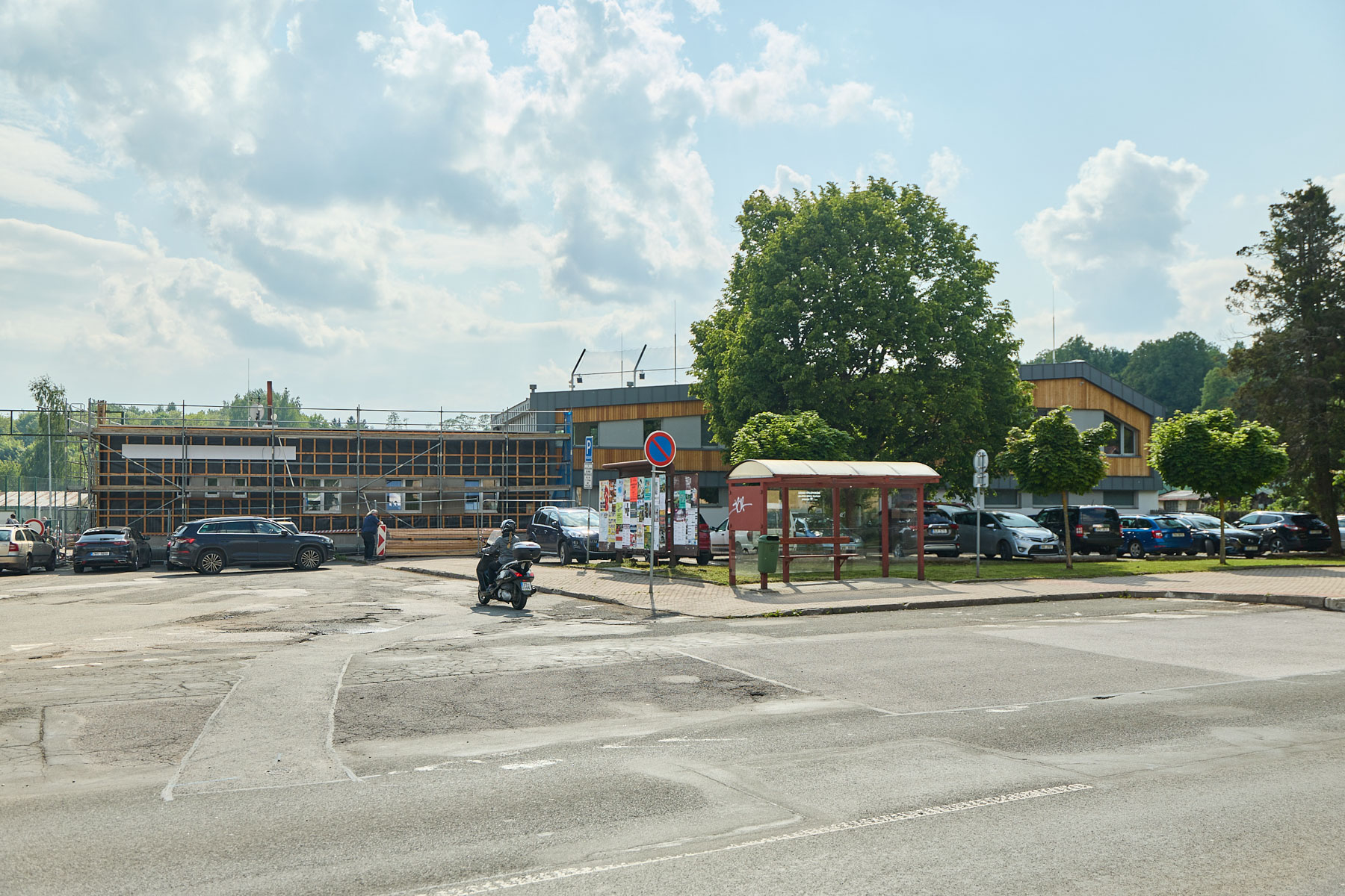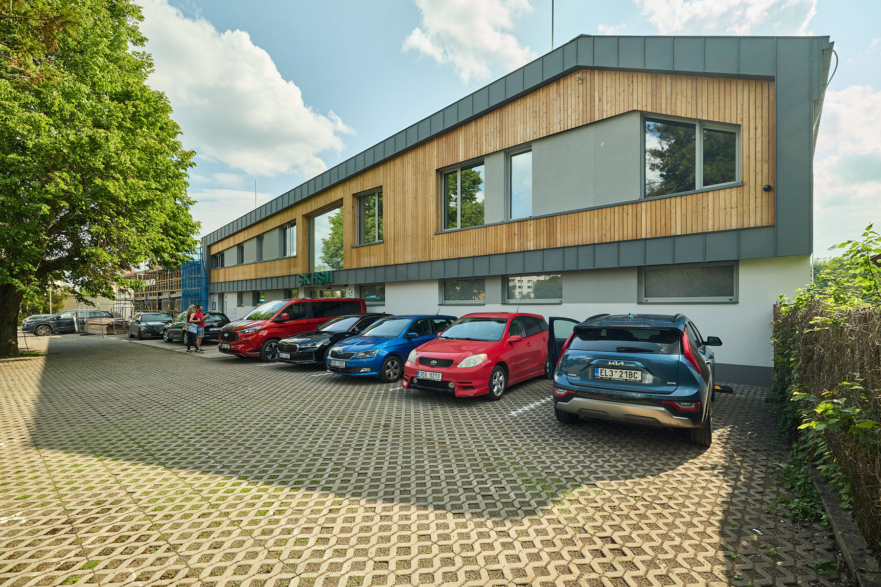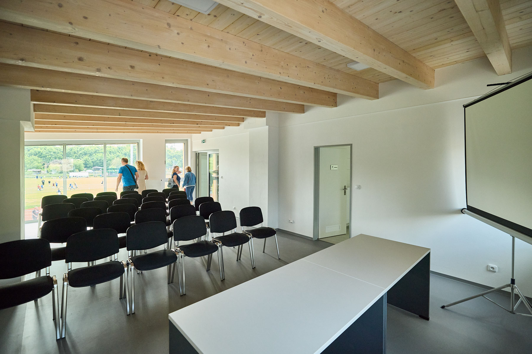 „Zadáním bylo dát objekt dohromady. Severní dvoupatrovou část stavby zůstala, ale sundali jsme z ní střechu. Střední, přízemní část, která byla ve špatném technickém stavu, jsme kompletně odstranili,“ popisuje architekt Vocet. Zmizely tak původní šatny i sklep, odkud vedla stará vodovodní přípojka. Celý objekt získal nové přípojky – vodovodní i elektrickou – a střecha byla osazena fotovoltaickou elektrárnou, která dotuje provoz budovy, případně se přetoky dají posílat i do sítě.