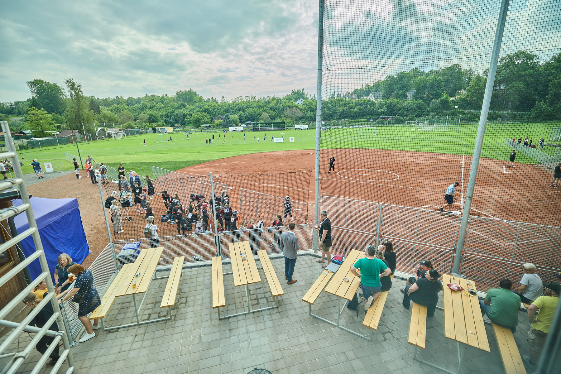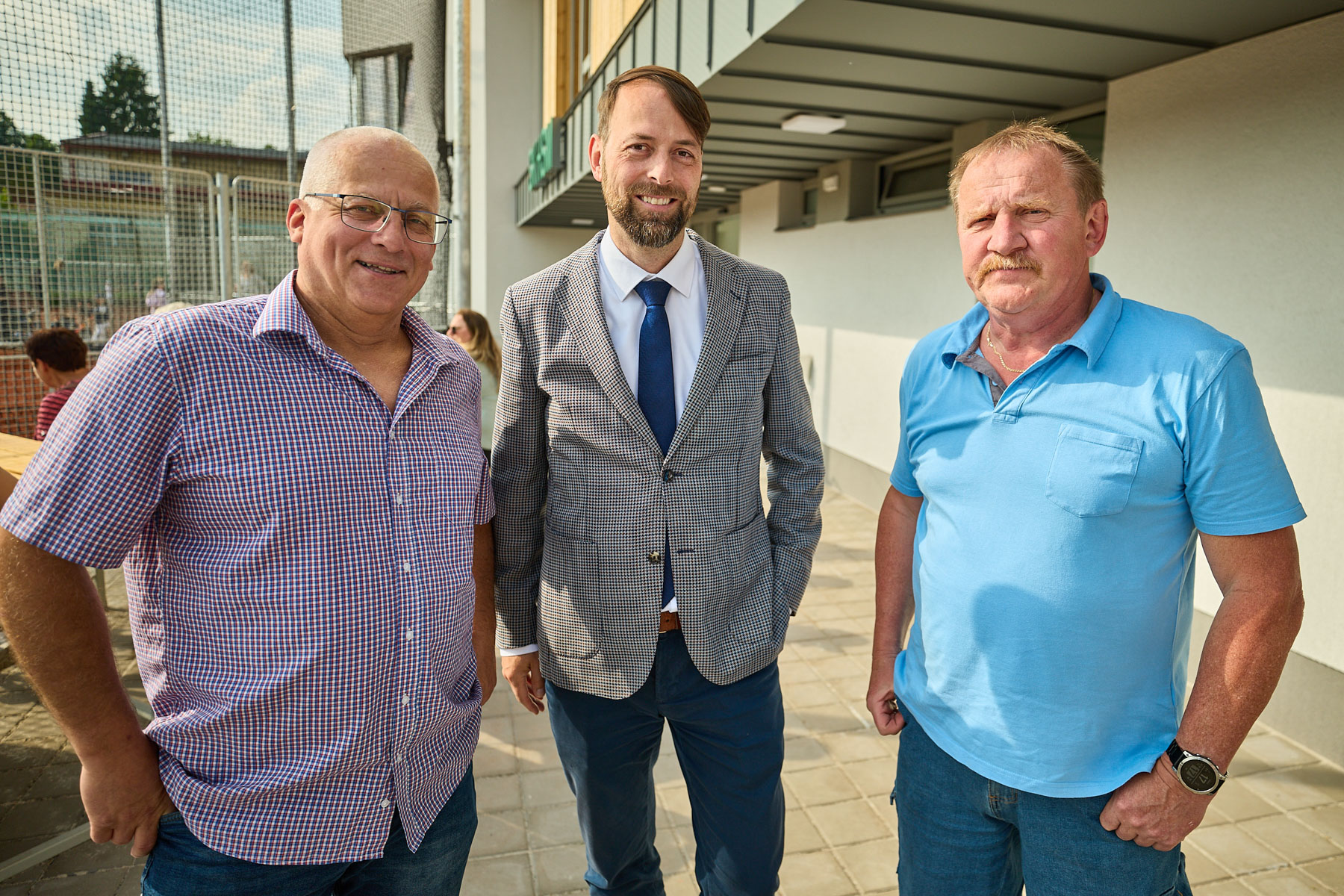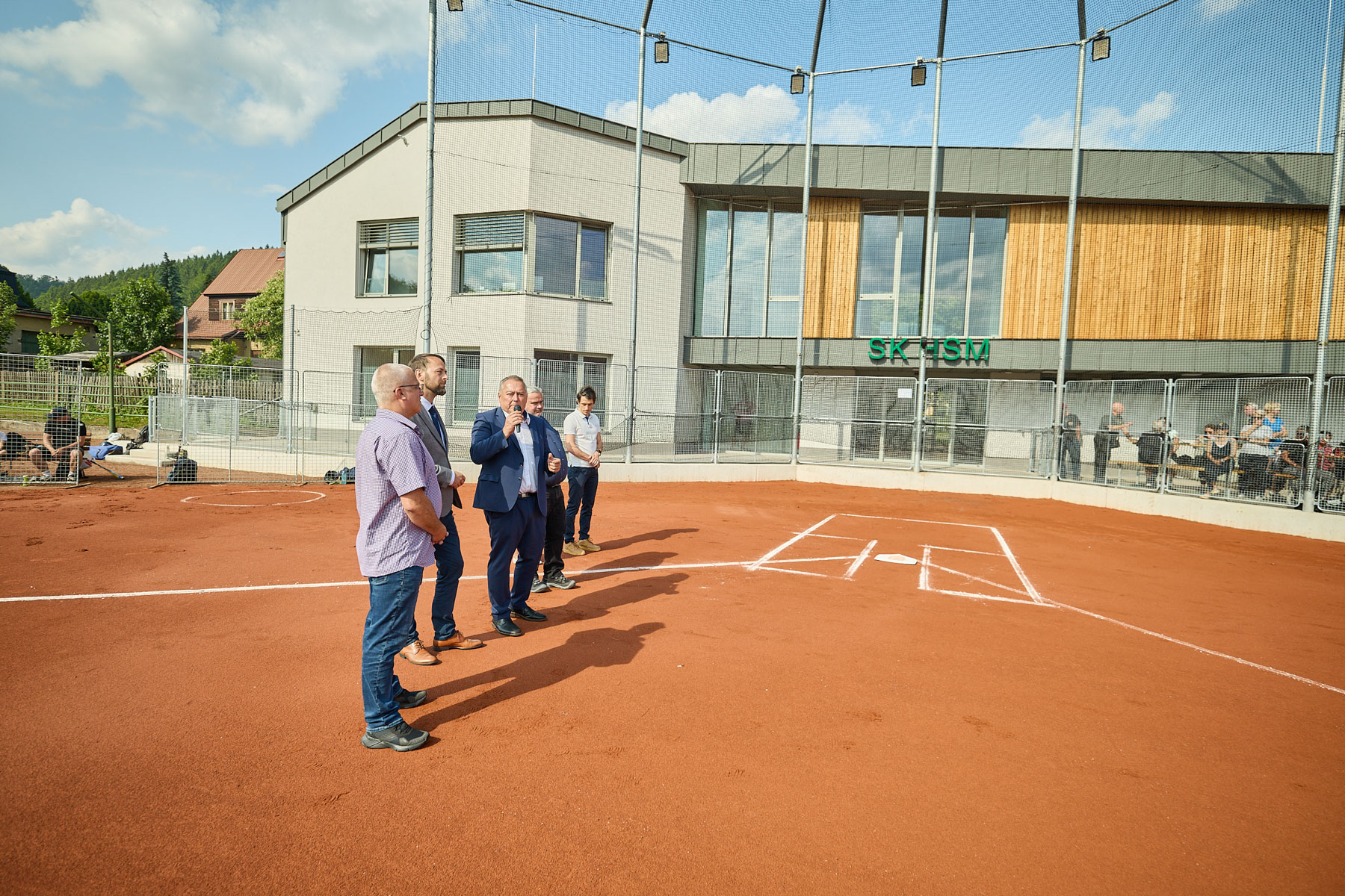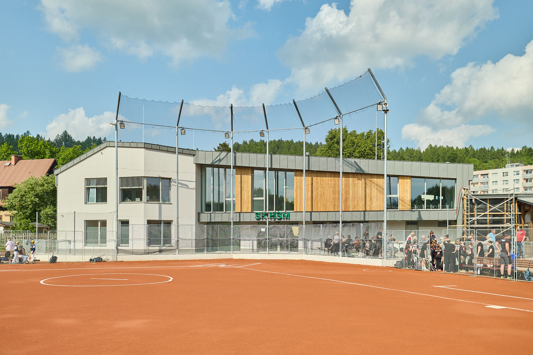 Kromě samotné budovy se areál dočkal i dalších změn. Je nové antukové softballové hřiště s novými ochrannými sítěmi, z monolitického betonu se udělaly nové základy a zpevnily se plochy se sezením, došlo také k úpravě prostoru podle pravidel Fotbalové asociace ČR, které určují oddělení pohybu hráčů a diváků, nová je průjezdná brána a rekonstrukce se týká také sousedící hospody. Ta dostane stejnou fasádu z modřínu a plechové architektonické prvky, čímž dojde k vytvoření hezkého celku s hlavní budovou. „Fasáda se obkládá od začátku června a hotovo by mělo být ještě před začátkem letních prázdnin,“ dodává Jaroslav Vocet. Mimo stavební projekt zůstalo parkoviště, ovšem město již plánuje zvýšení jeho kapacity.