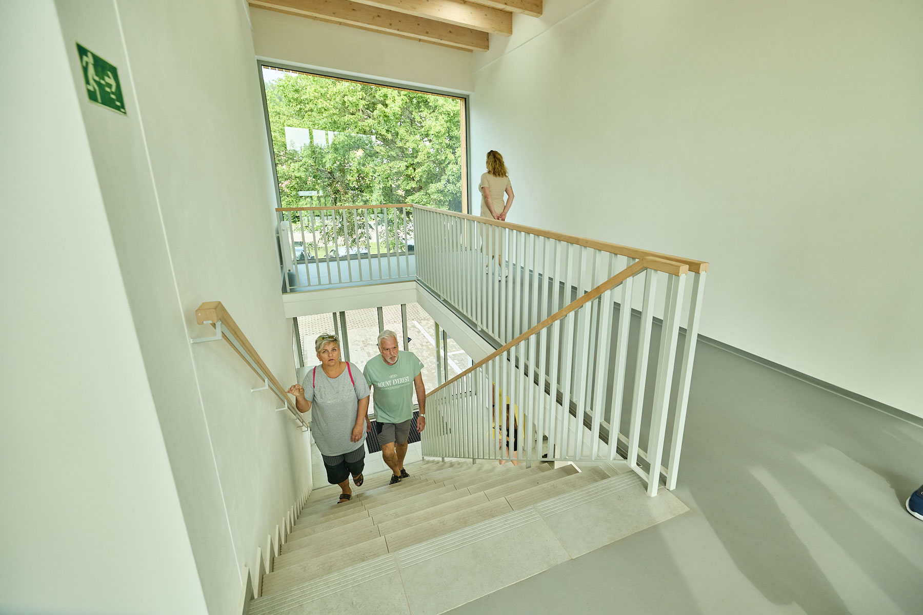 Jedním z unikátních prvků jsou velké prosklené plochy. To největší okno nad vstupem od parkoviště, o rozměrech 3,5 × 3,5 metru, muselo být osazeno speciálním kloubovým jeřábem a vážilo přes půl tuny. „Takové prosklené plochy se používají zřídka – jsou stavebně náročné, ale efekt je impozantní,“ líčí architekt a s úsměvem dodává, že jedno sklo se při instalaci rozbilo, ovšem dodavatel si s tím prý skvěle poradil.