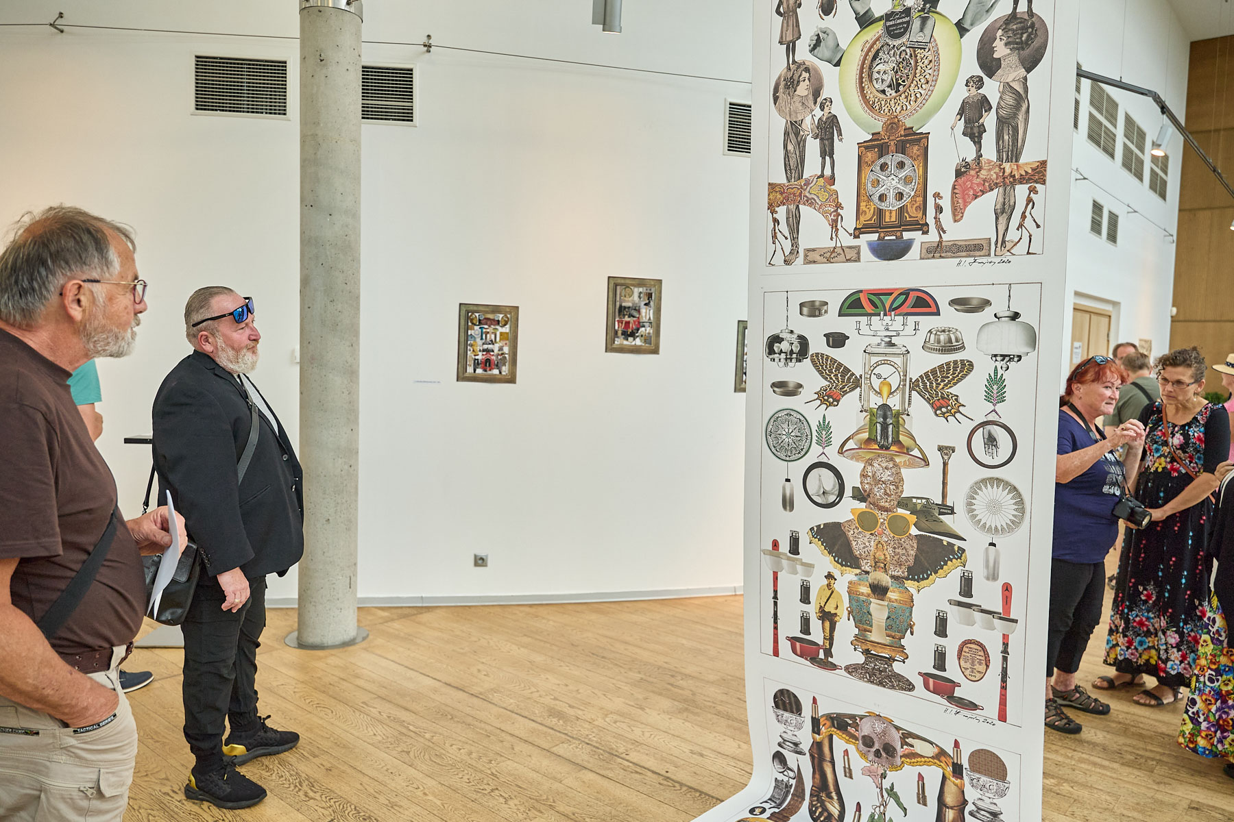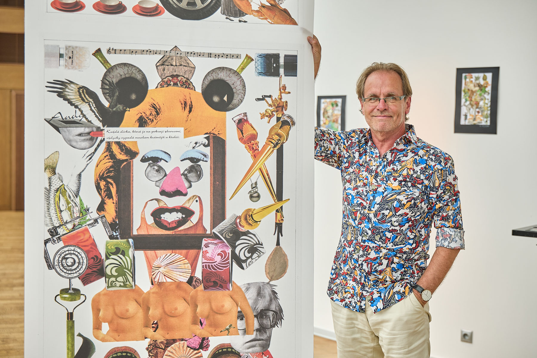 Nejstarší vystavená koláž pochází z roku 1985 a nese název V zámku a podzámčí. „To jsem ještě netušil, že jednou budu bydlet v České Skalici u Babiččina údolí,“ usmál se kolega z naší redakce. Právě práce z 80. a 90. let tvoří historický základ výstavy, ovšem její gró tvoří především koláže z poslední dekády.