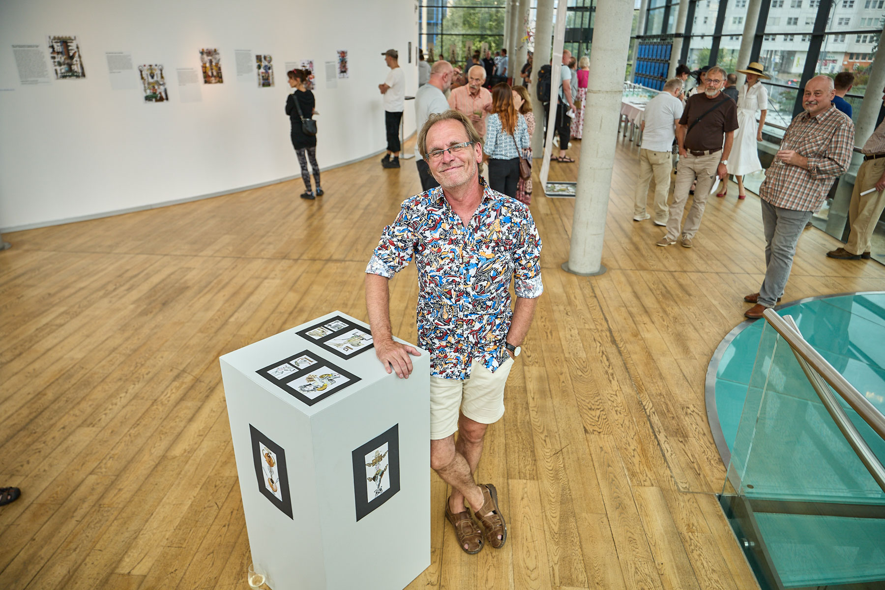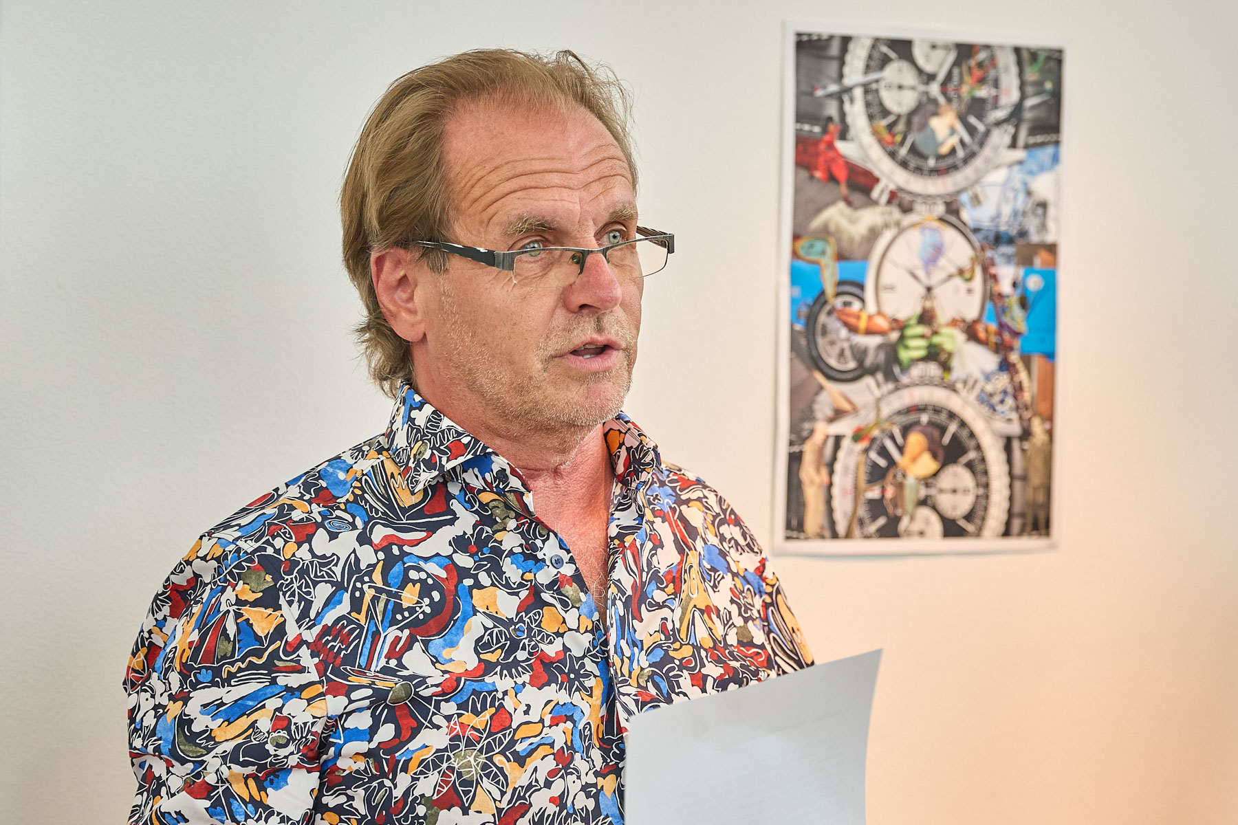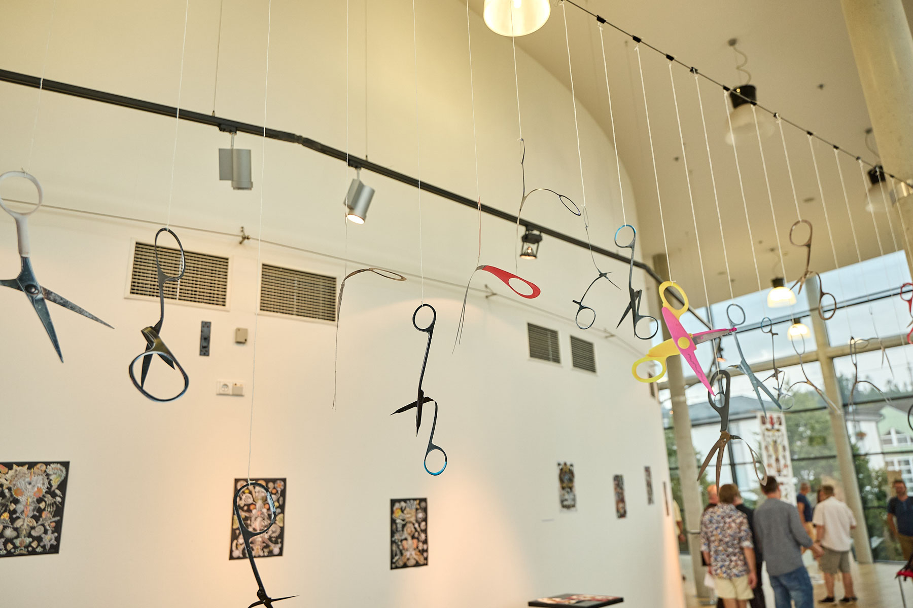 Zajímavou součástí výstavy byl i autorův osobitý komentář k technice – totiž že koláže jsou výhradně ručně stříhané, nikoliv digitálně upravené. „Už na několika výstavách se mi stalo, že za mnou přišli lidé, kteří si mysleli, že to dělám na počítači. Tak jsem před nimi odrámoval některé práce a nechal návštěvníky si na ně sáhnout. Aby pochopili, že každý střih je opravdový.“ Tento častý dotaz ho před výstavou v Trutnově přiměl jakousi vytvořit nůžkovou instalaci. Nůžkami vystříhal třicet papírových nůžek, aby ukázal, že za jeho tvorbou skutečně stojí ruční práce.