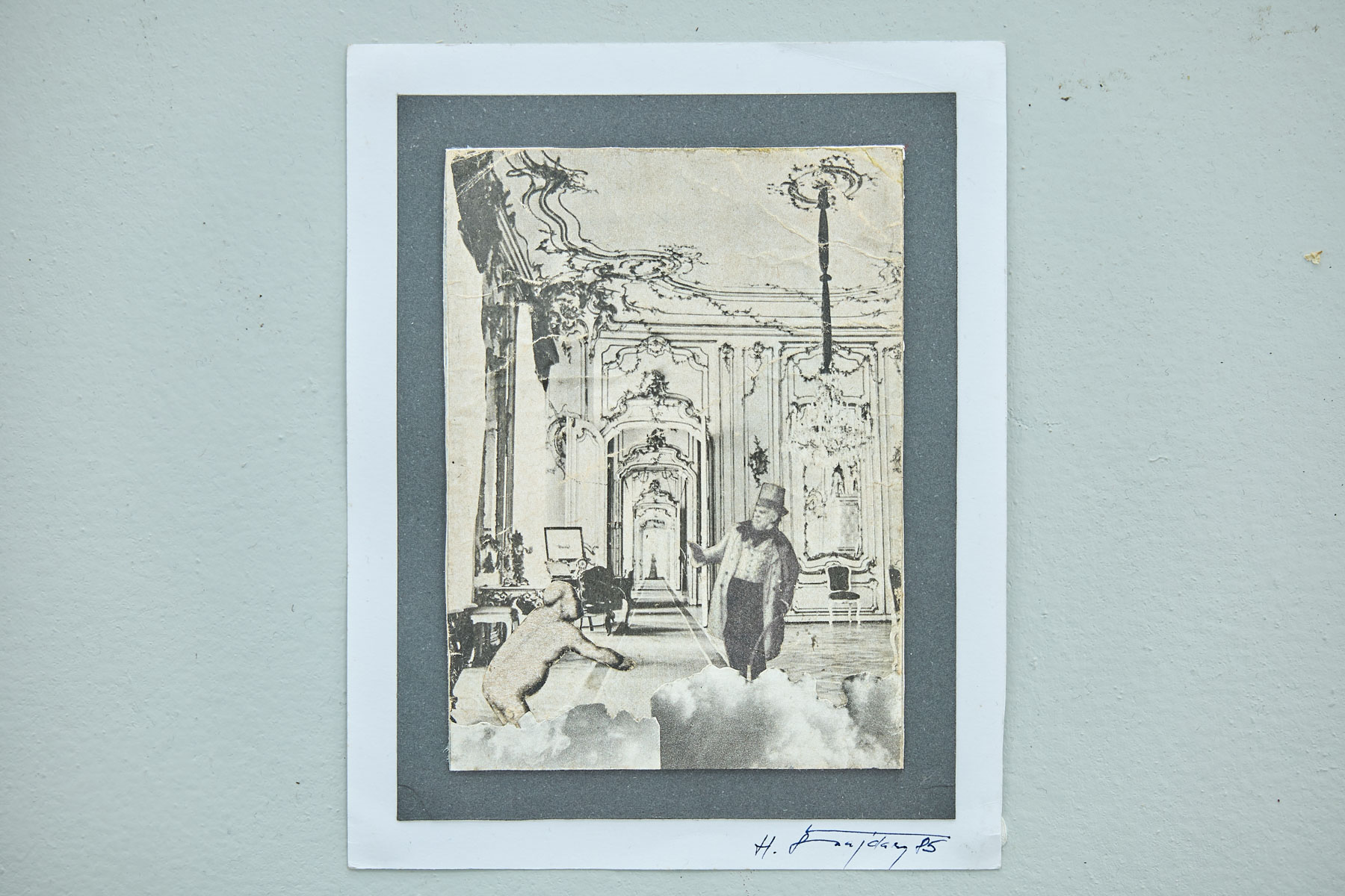 Jedním z tematicky zajímavých oblastí výstavy je série šesti koláží vytvořených na základě vlastních snů. „Tyhle koláže jsem udělal vědomě – šel jsem do toho s tím, že z konkrétního snu vznikne obraz. Jindy to dřív přicházelo spíš podvědomě,“ vysvětloval Hynek, který si své sny nepravidelně zapisuje již od roku 1990.