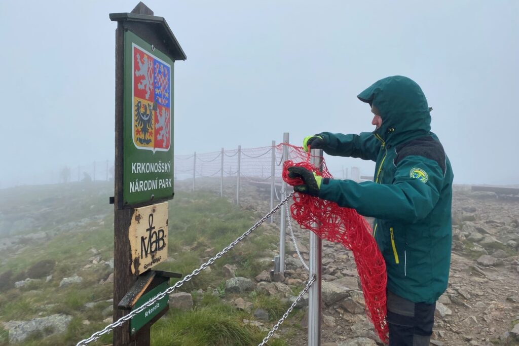 Na Sněžce a u Obří boudy jsou opět ochranné sítě, cílem je usměrnit turisty
