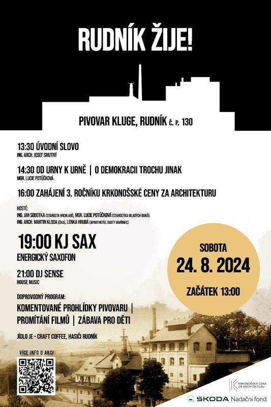 Ze spolupráce tak vznikla akce, která spojuje hudební produkci, přednášky, komentované prohlídky budov, promítání filmů a debat o architektuře v rámci zahájení 3. ročníku Krkonošské ceny za architekturu. Kompletní program včetně jmen hostů a času můžete najít v události na FB .