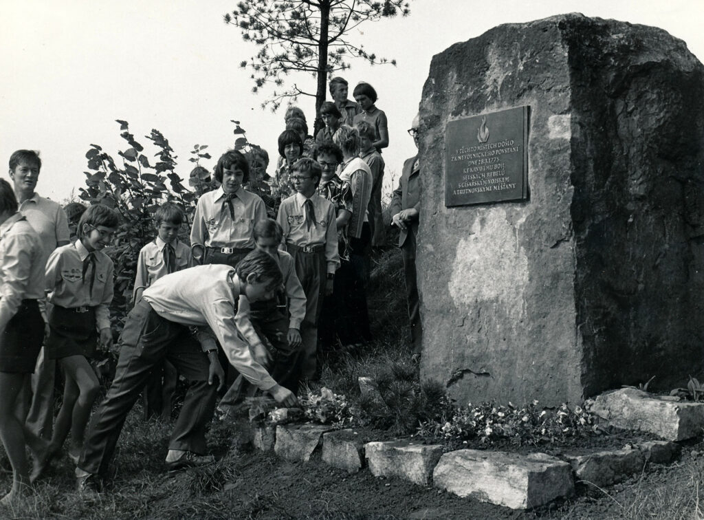 v podobě pískovcového bloku, na němž byla připevněna pamětní deska s textem: „28. března 1775 bylo krvavě potlačeno na zdejším kopci povstání nevolníků Trutnovska“.