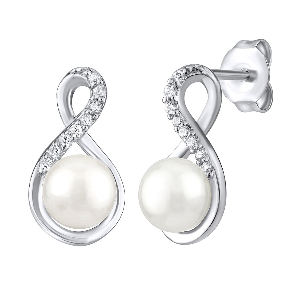 Stříbrné náušnice s bílou přírodní perlou.