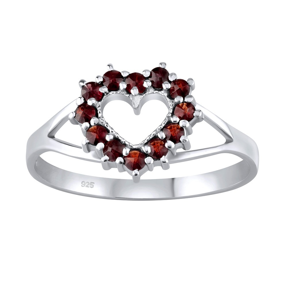 Stříbrný prsten srdce s pravým přírodním granátem.