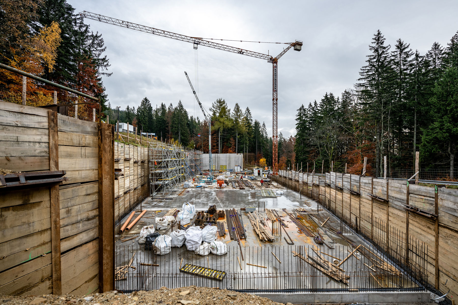 Stavba retenční nádrže pro zasněžování v Janských Lázních