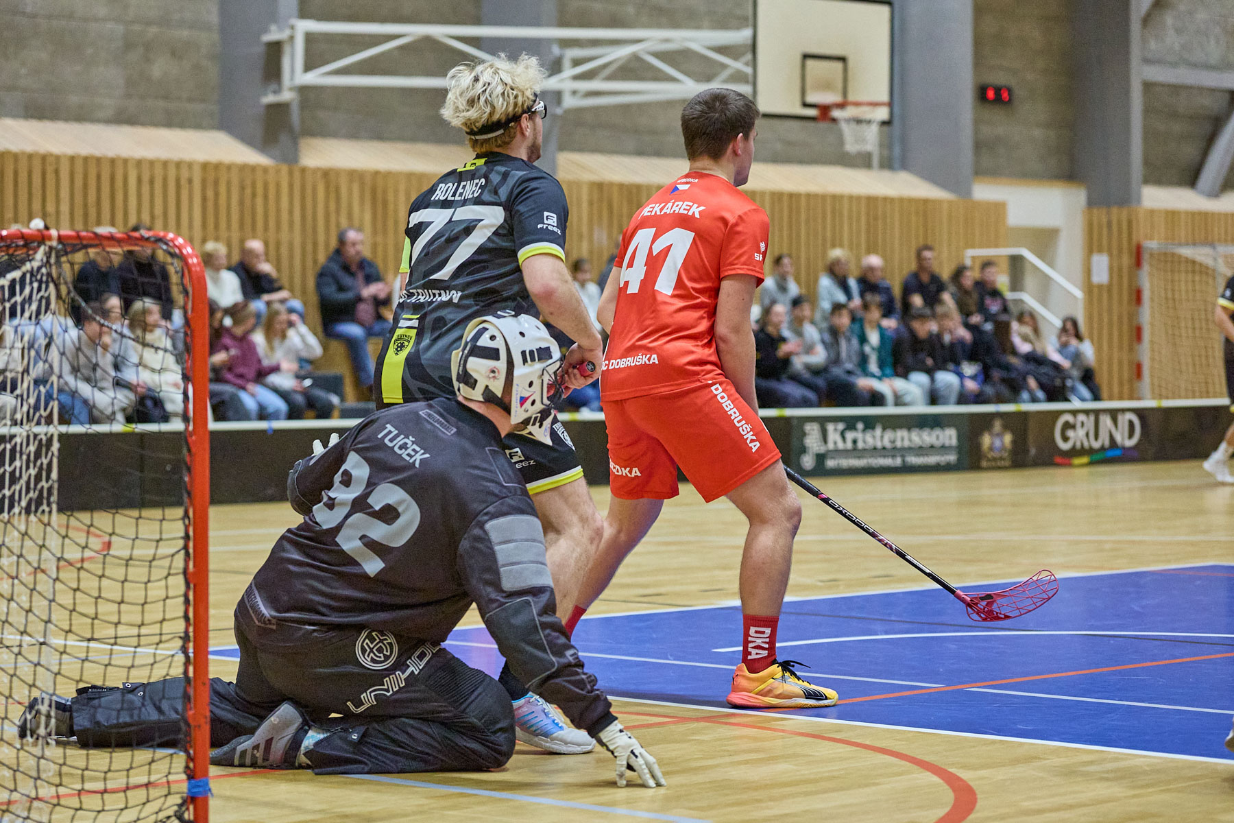 Šestnáct vteřin po zahájení třetího dějství faulovali hosté v předbrankovém prostoru, a tak bylo nařízeno trestné střílení. Matěj Mikšovský krásně podstřelil gólmana a navýšil tak náskok Šelem na 4:0. Na nájezd se můžete podívat na instagramovém profilu FBC Trutnov. Ve 44. minutě snížili hosté na rozdíl tří branek. Po několika nebezpečných zákrocích červeno-bílých rozhodčí udělili trest na 2+2 minuty, a o minutu později dokonce červenou kartu, tudíž trest do konce utkání a další přesilovou hru na 2+2 minuty. Trutnov si tak vyzkoušel dokonce hru pět na tři. Žádnou z přesilovek se však proměnit nepodařilo. V posledních dvou minutách ještě přidal dvě branky střelec zápasu Matěj Mikšovský a Šelmy zvítězily 6:1.