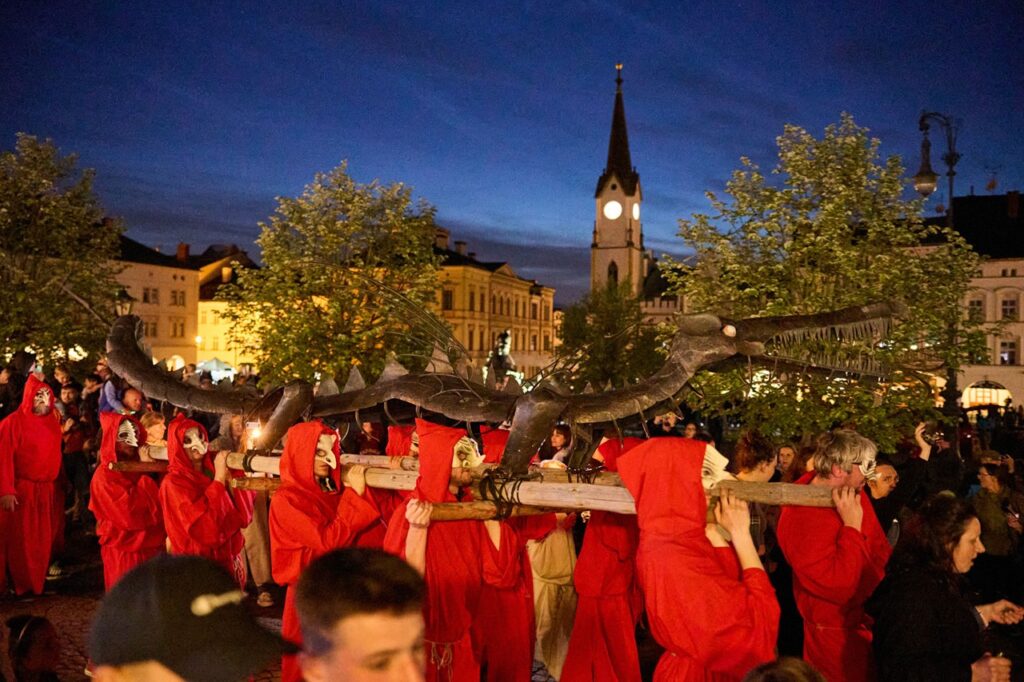 Stejně jako v minulých letech bude vrcholem Dračích slavností - Už ho nesou! magické večerní procesí s drakem se srazem ve 20.30 hodin na parkovišti u kina Vesmír, kde pro zájemce budou k dispozici kutny, louče, hudební nástroje, prapory… Samotný průvod vyrazí od kina ve 21 hodin na Krakonošovo náměstí, kde bude mezi 21.30 a 22. hodinou na věž Staré radnice v souladu s tradicí vyvěšen šestimetrový trutnovský drak. Tečkou tohoto rituálu bude krátká multimediální kompozice elektronického mága Omniona vytvořená pro Dračí slavnosti, kterou doprovodí projekce Johany Lunterové.